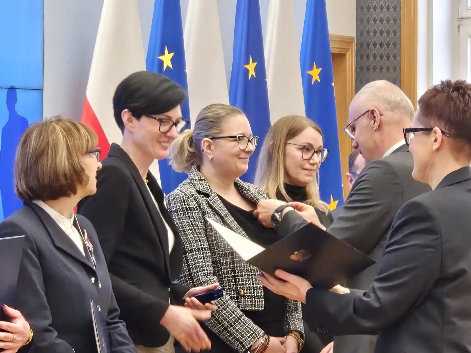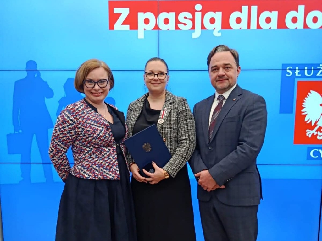 Odznaczenie z rąk szefowej służby cywilnej Anity Noskowskiej-Piątkowskiej i sekretarza stanu, zastępcy szefa Kancelarii Prezesa Rady Ministrów Grzegorza Karpińskiego odebrali: