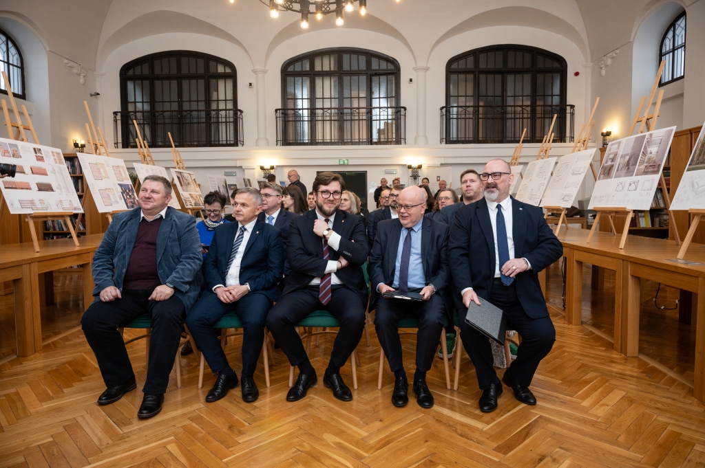Podczas spotkania zaprezentowano 5 wyróżnionych prac, wyłonionych podczas I etapu konkursu spośród 22 koncepcji. Zwycięskie prace zostały wyeksponowane w czytelni akt.
